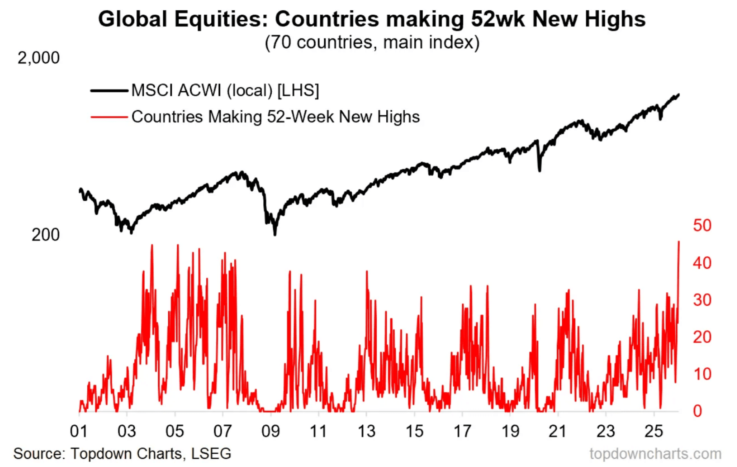 We’re now seeing the most number of countries making new 52-week highs in their main stock market indexes.