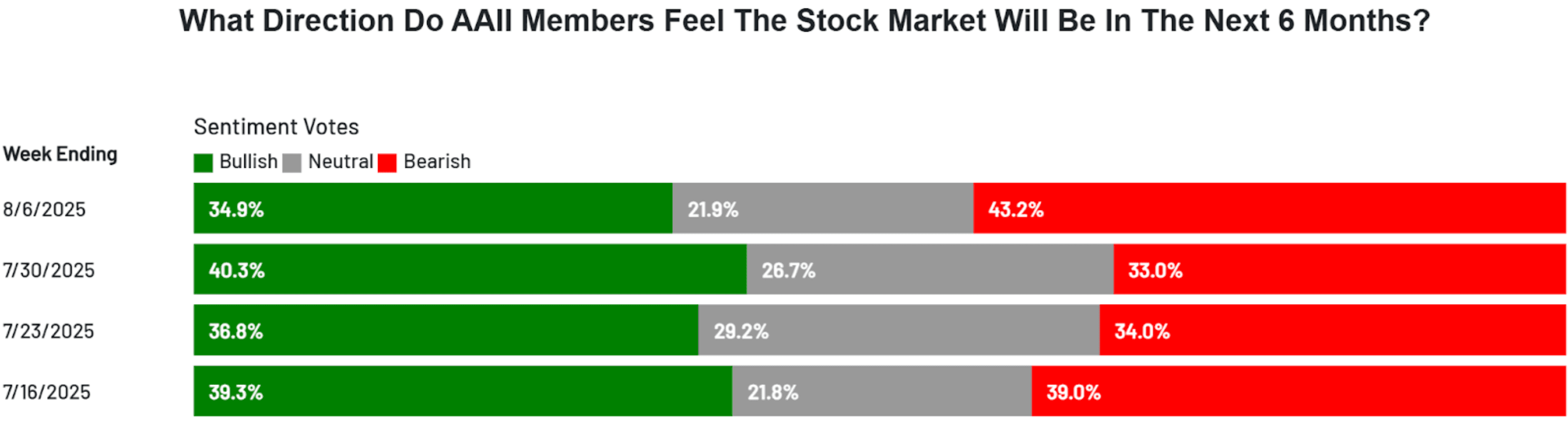 This is the results of the latest weekly sentiment survey by the American Association of Individual Investors (AAII).