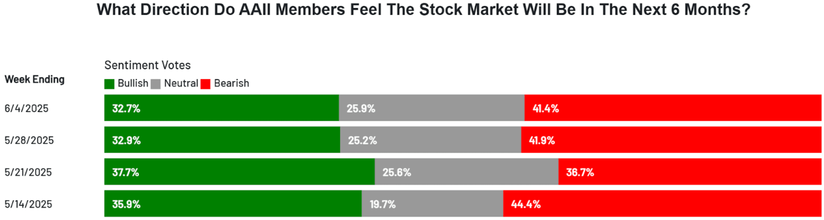 This is the latest results of the weekly sentiment survey conducted by the American Association of Individual Investors (AAII).
