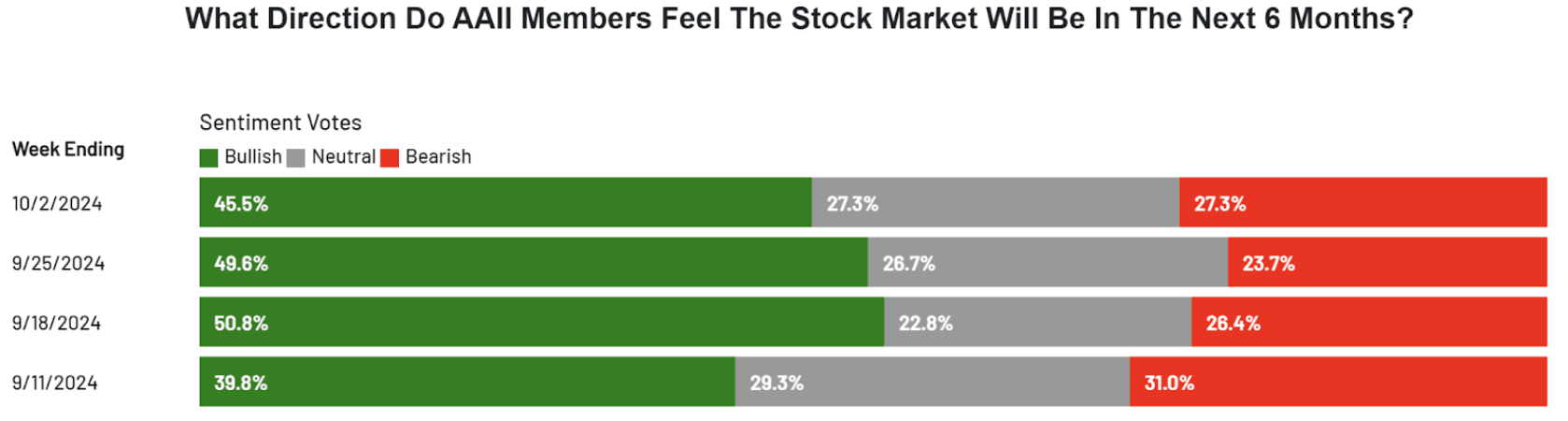 This is the latest result of the weekly sentiment survey carried out by the American Association of Individual Investors (AAII).