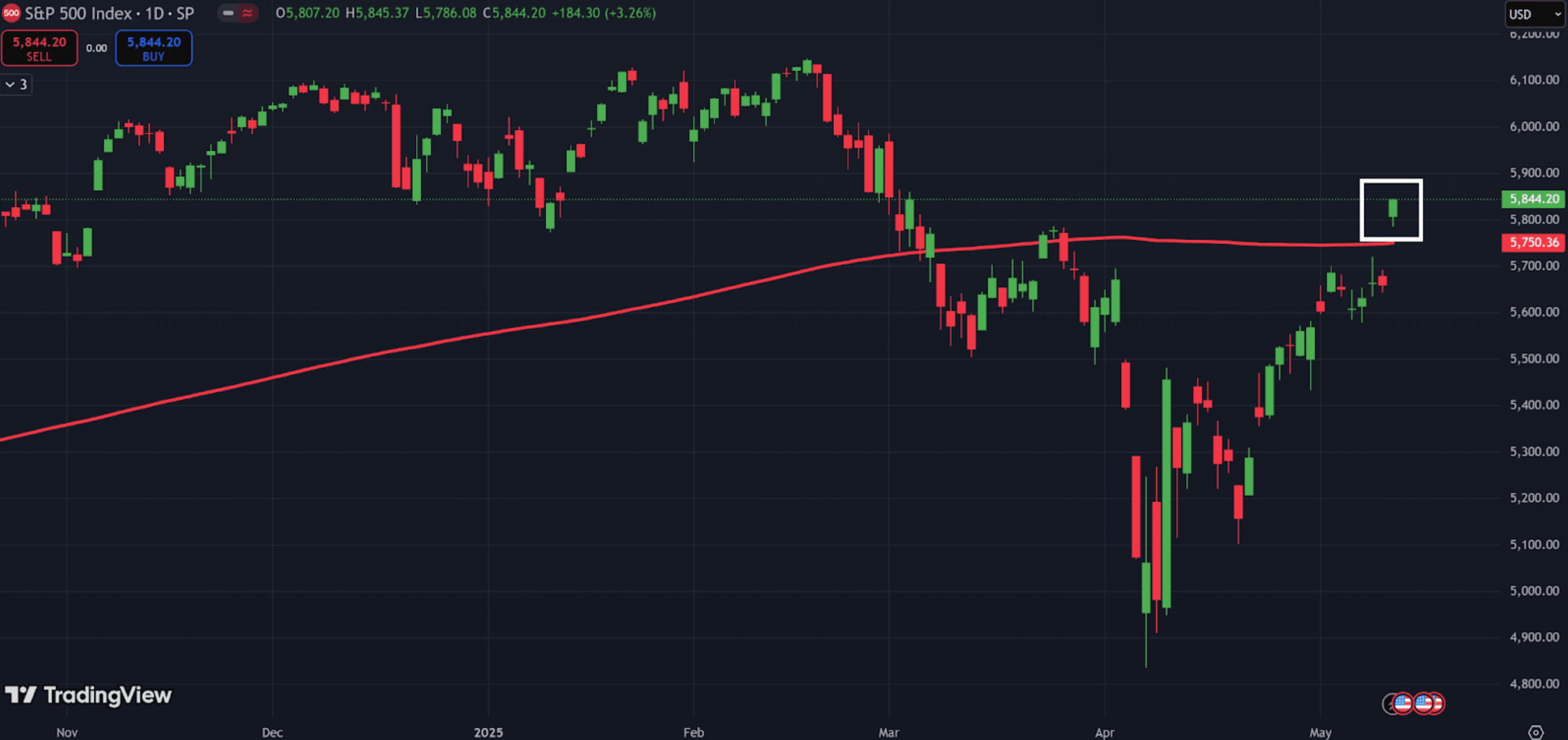 If President Trump comes out today and reinstates tariffs on everyone, the market will tank again – no matter how strong the price action has been.