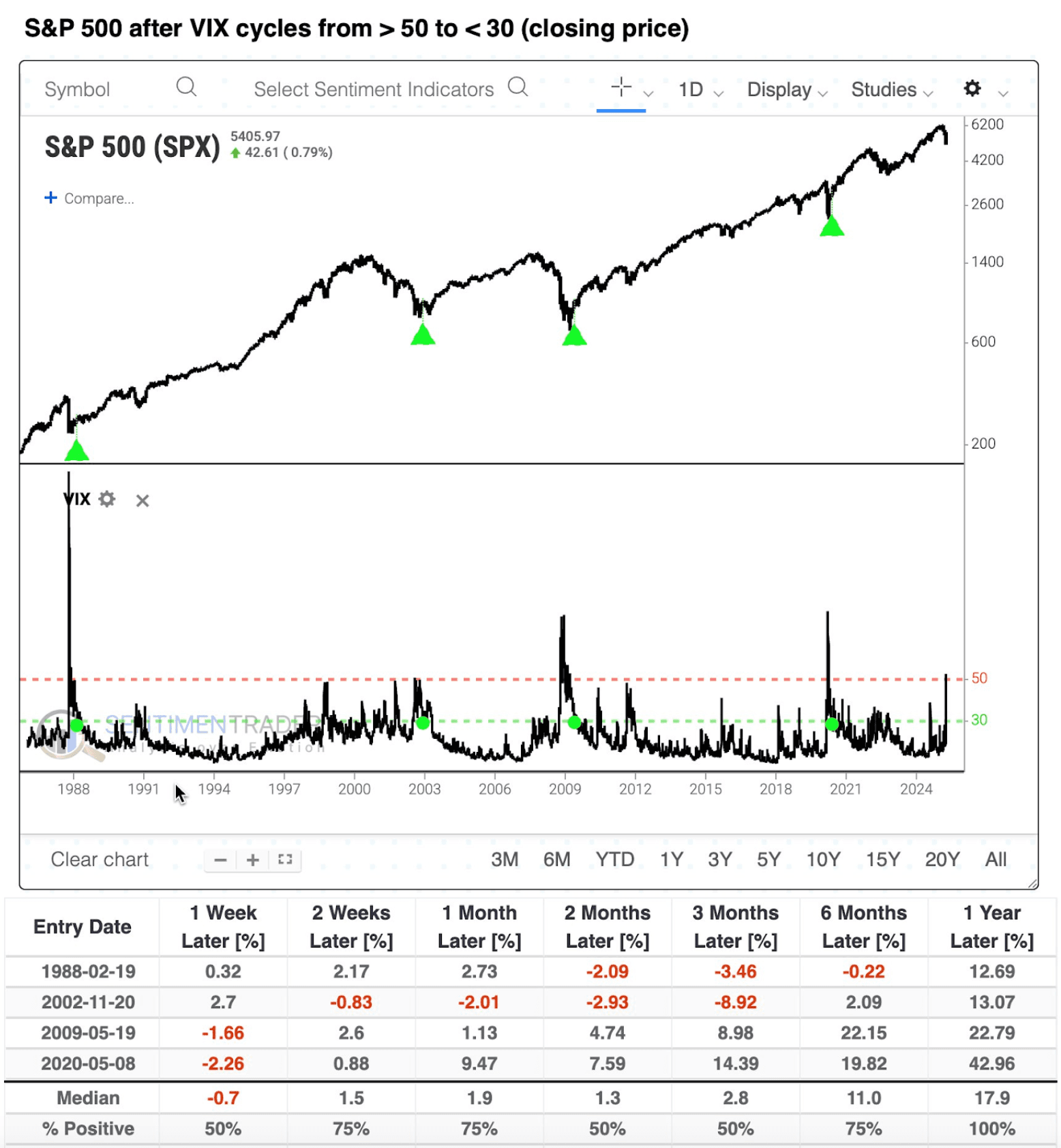 Since the inception of the VIX, that move from over 50 → 30 has happened four times.