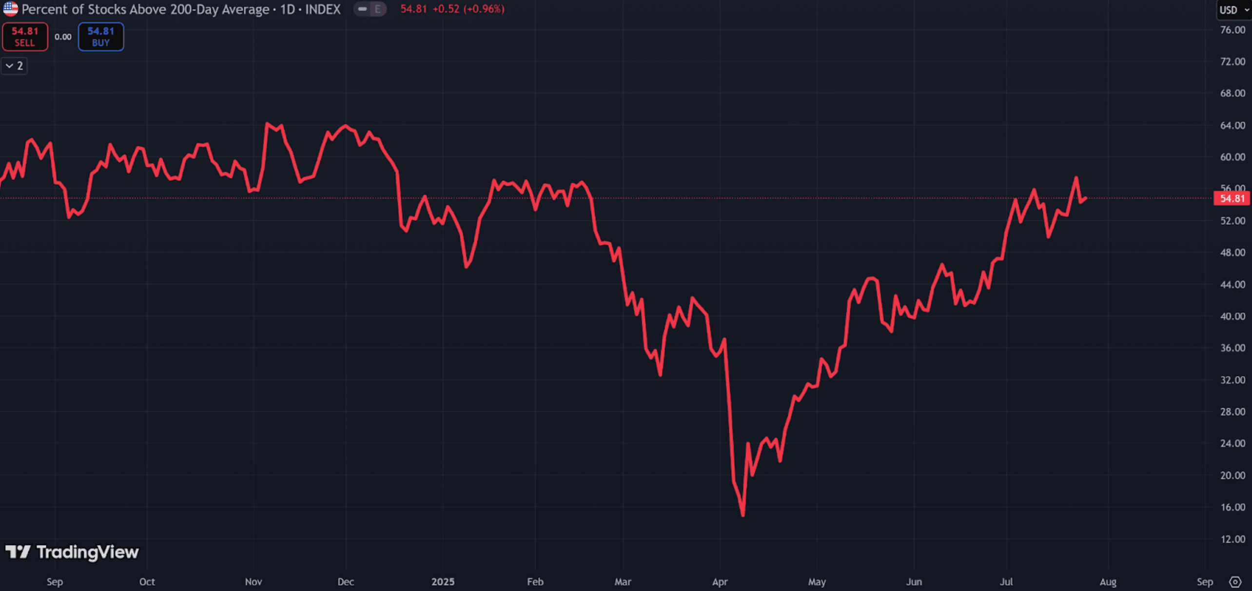 And close to 55% of them are trading above their 200-day moving averages.