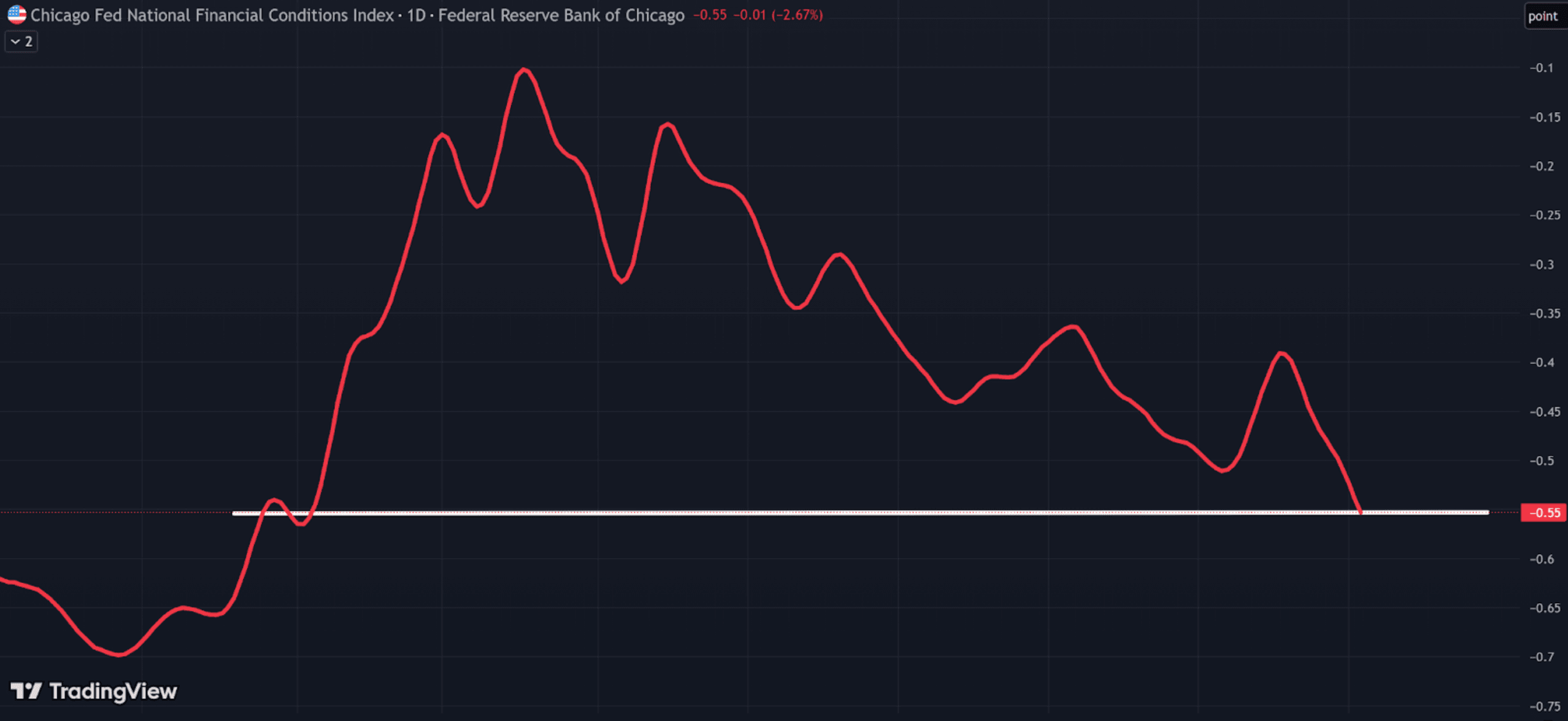 Liquidity is also abundant, with the National Financial Conditions Index – which is inversely proportional to liquidity – hitting the lowest levels since 2022.