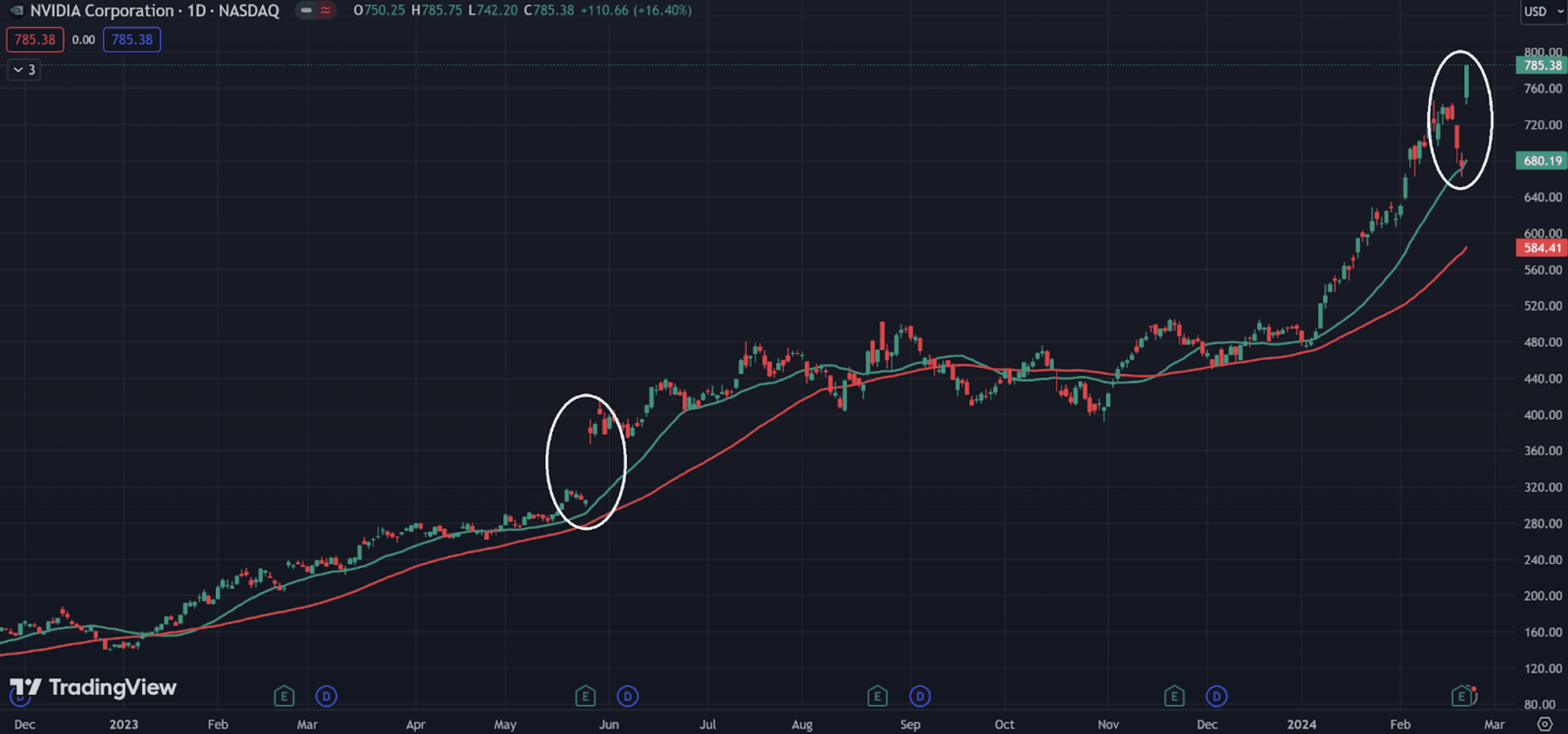 The last time we saw the stock make such a powerful single-day move was back in May 2023, when it reported its first-quarter earnings for 2023.