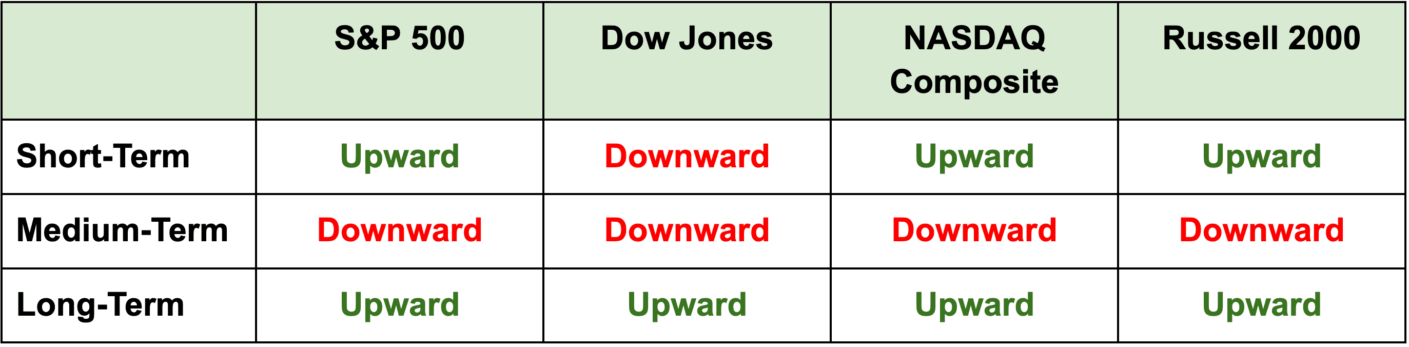 Note: Indexes closed higher once more – though in a much more muted fashion – buoyed by positive earnings sentiment. Short-term directions of the S&P 500 and the Russell 2000 flipped upward.