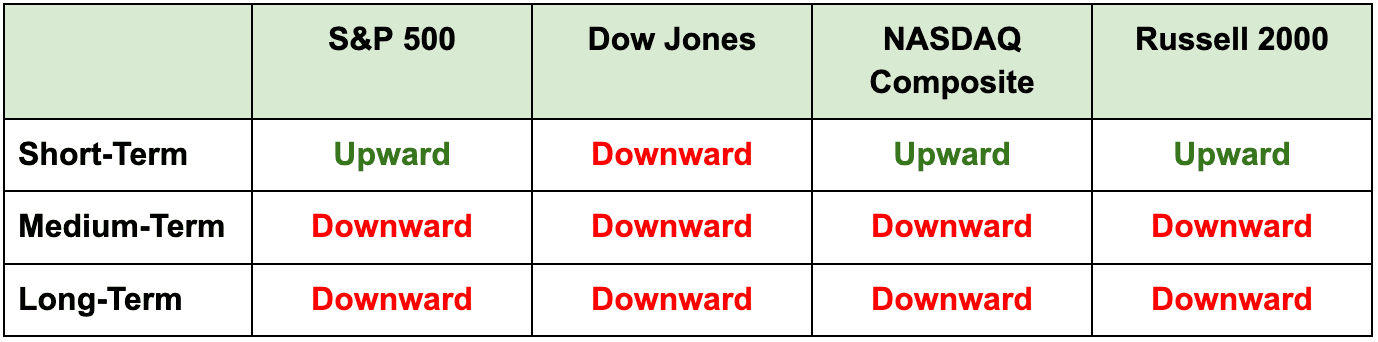 Note: Indexes closed higher on Frida again, for the second best week this year. No change in any index directions.