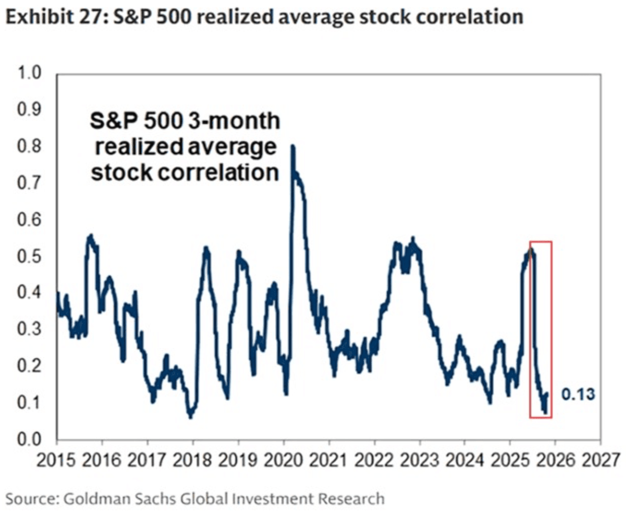 Right now, their correlation value is 0.13 – the lowest since 2018.