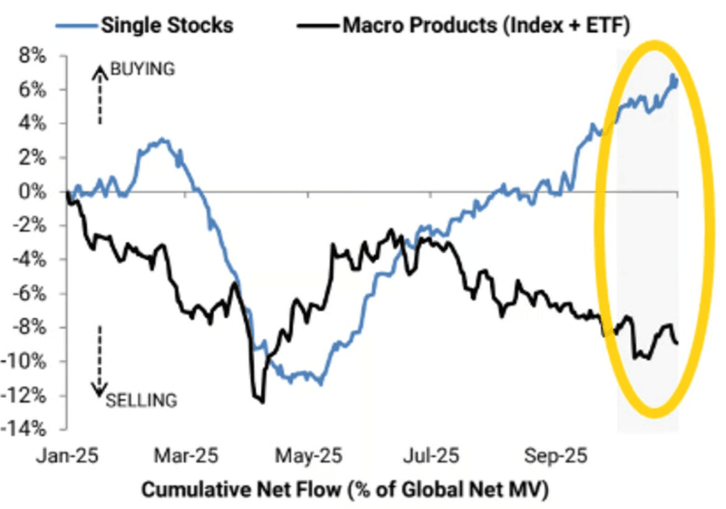 It shows institutional investors heavily buying single stocks…