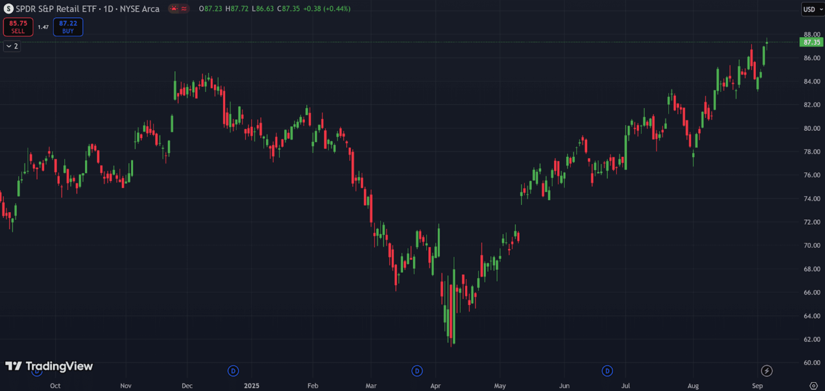 It’s a fund that tracks the performance of over 90 companies across a broad range of retail segments – from apparel and automotive to electronics and food.