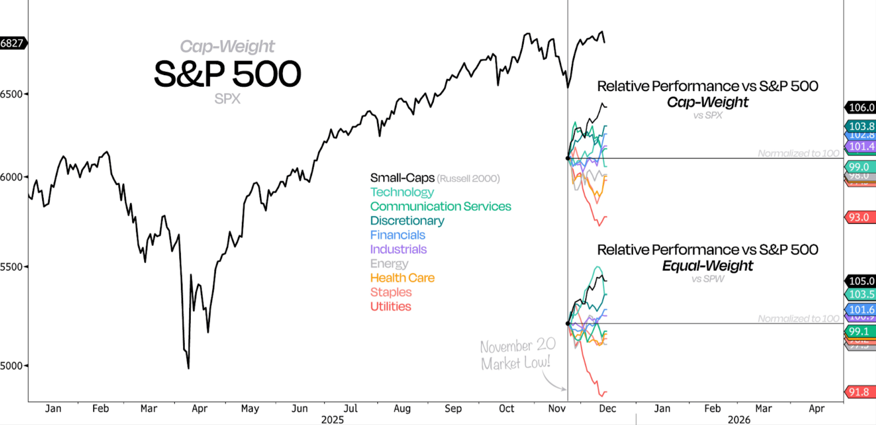 But take a look at how small-caps have performed since the November 20 market low.