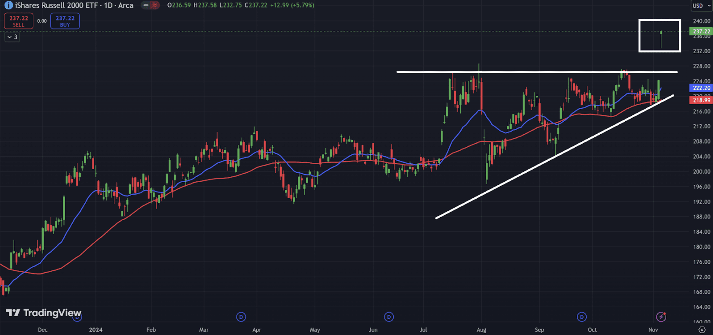 This is the small-cap Russell 2000 index blasting off after Trump’s victory.