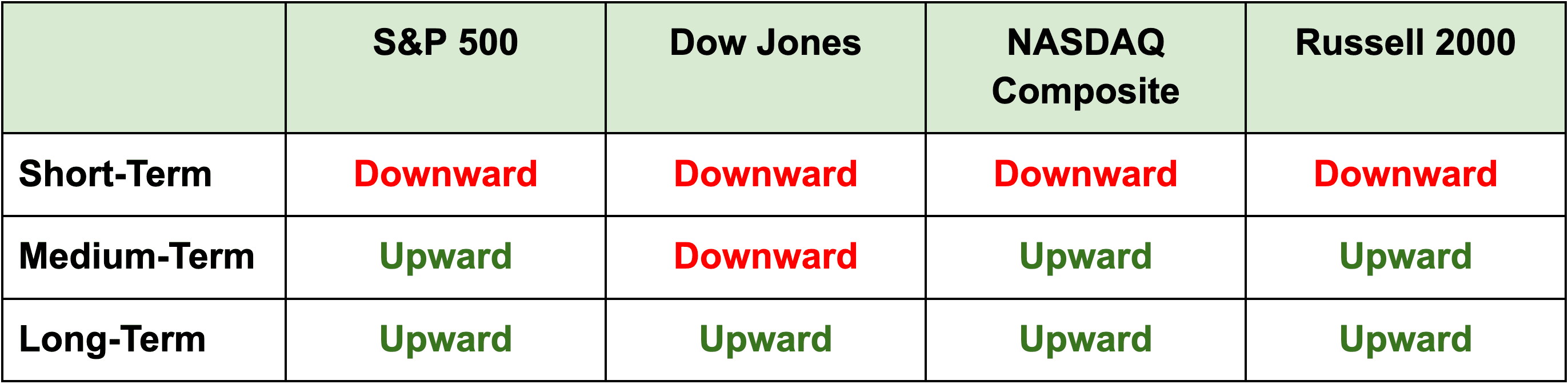 Note: All indexes closed lower yesterday, and as you can see – it has sent several index directions heading downward.