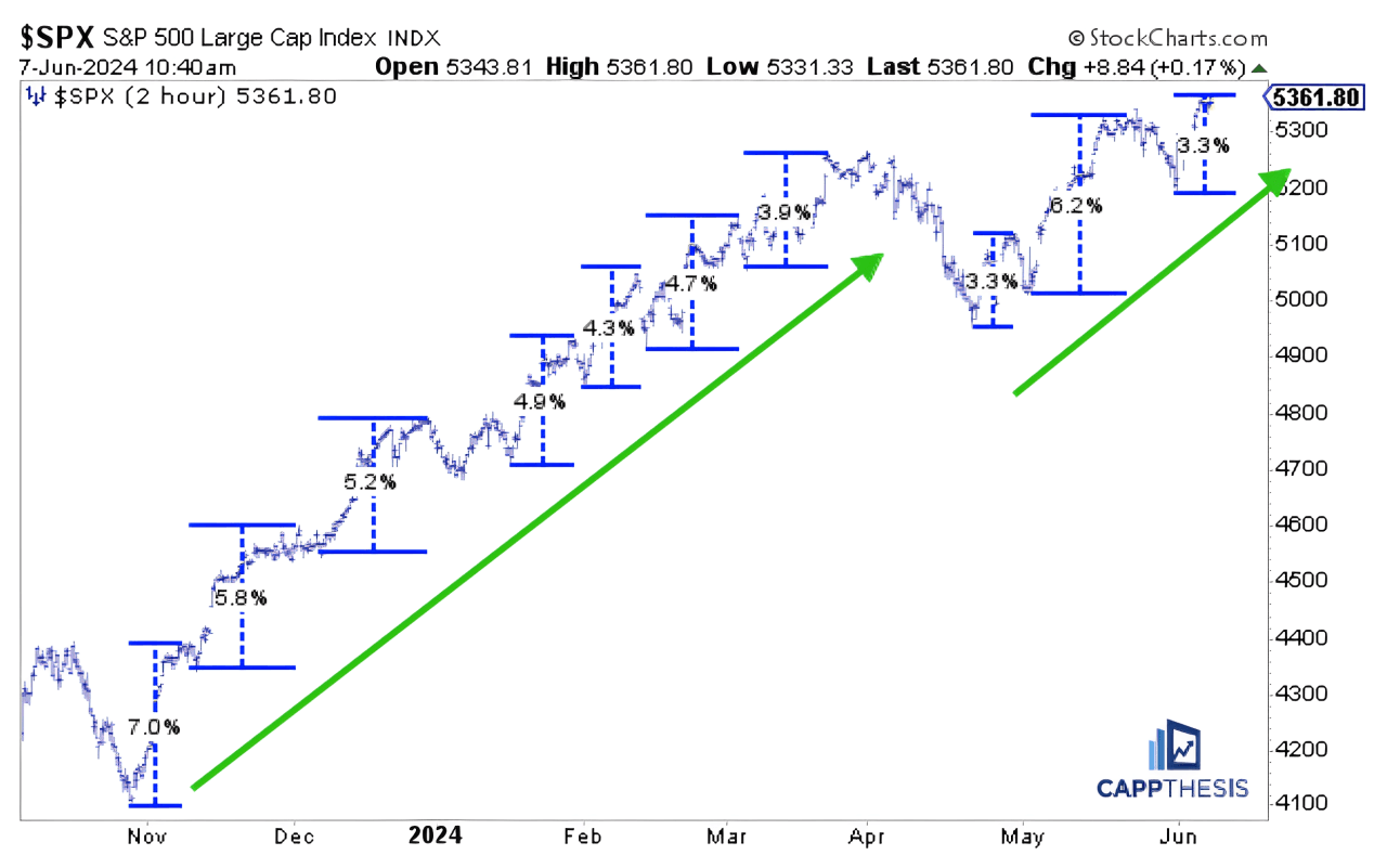 This is how the S&P 500 has moved since November last year – with the percentage increases of each “mini uptrend” marked.