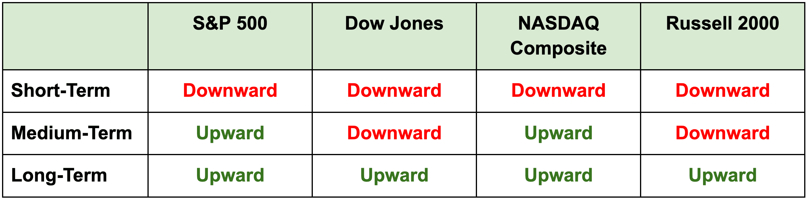 Note: All indexes closed negative to end the week, sending more index directions downward. But the long-term index directions all still remain solidly upward – something to keep in mind.