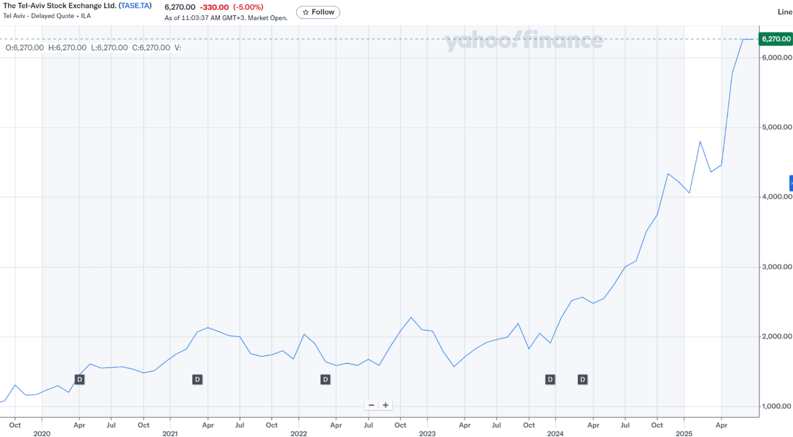This is the chart for the Tel-Aviv Stock Exchange – essentially a gauge of Israel’s entire stock market.