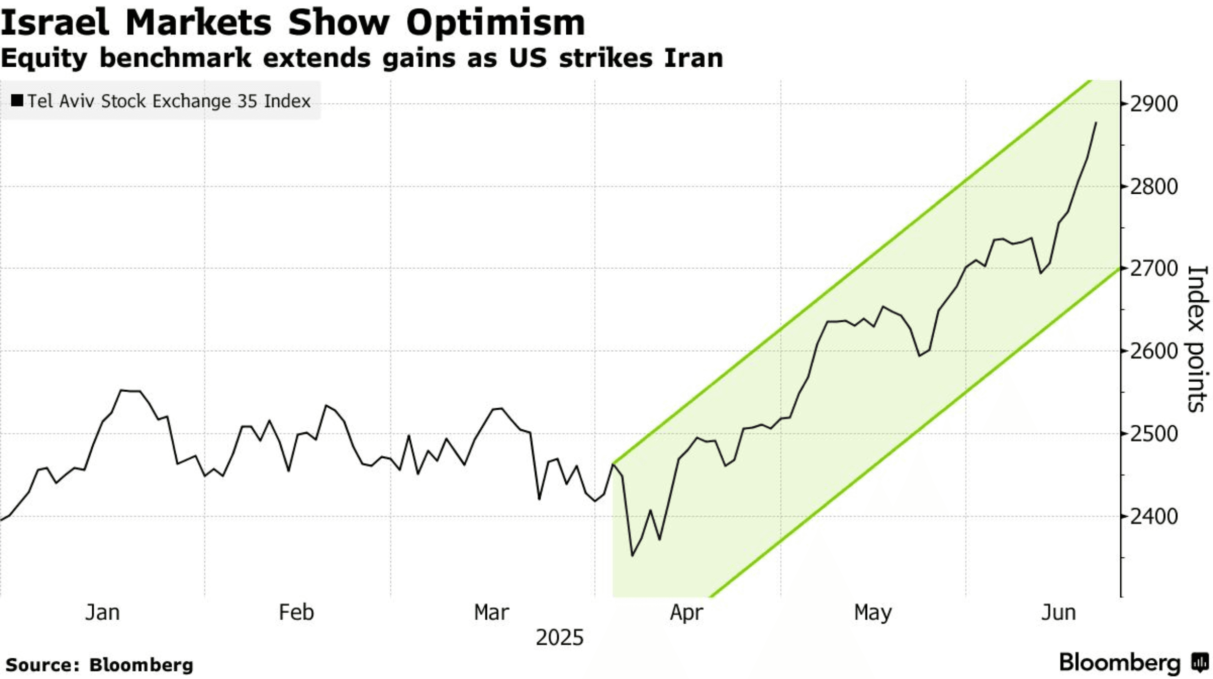 Instead, the opposite has happened. Israeli stocks have instead surged to all-time highs (with a slight pullback over the weekend).