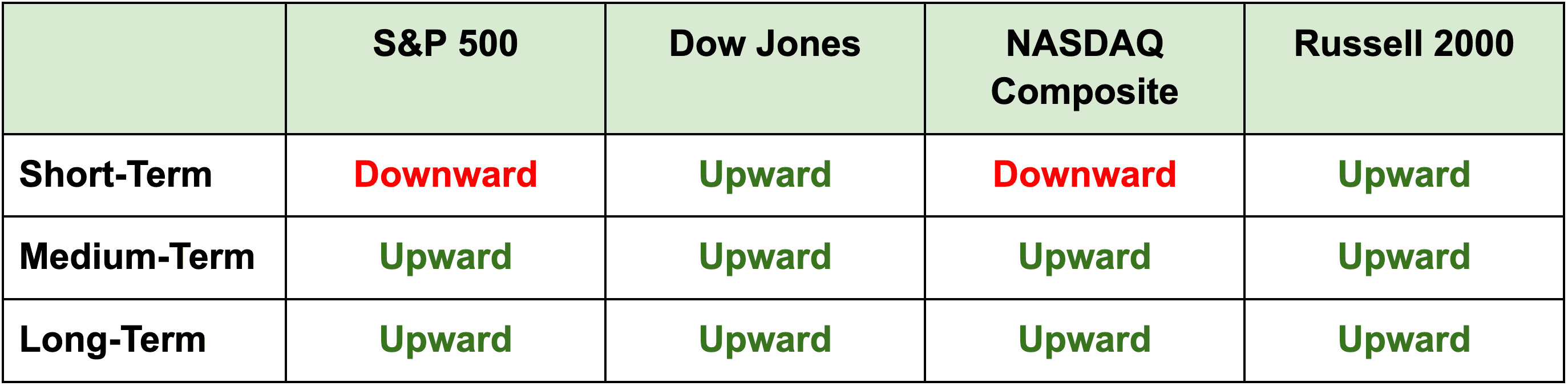 Note: All indexes closed lower to end last week, with the short-term direction of the S&P 500 flipping downward.
