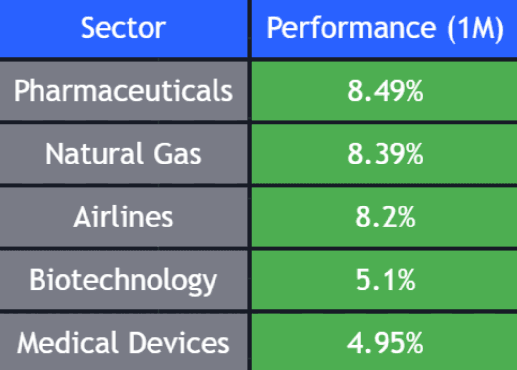 And as you can see, for the past month, the tech sector didn’t even crack the top five.
