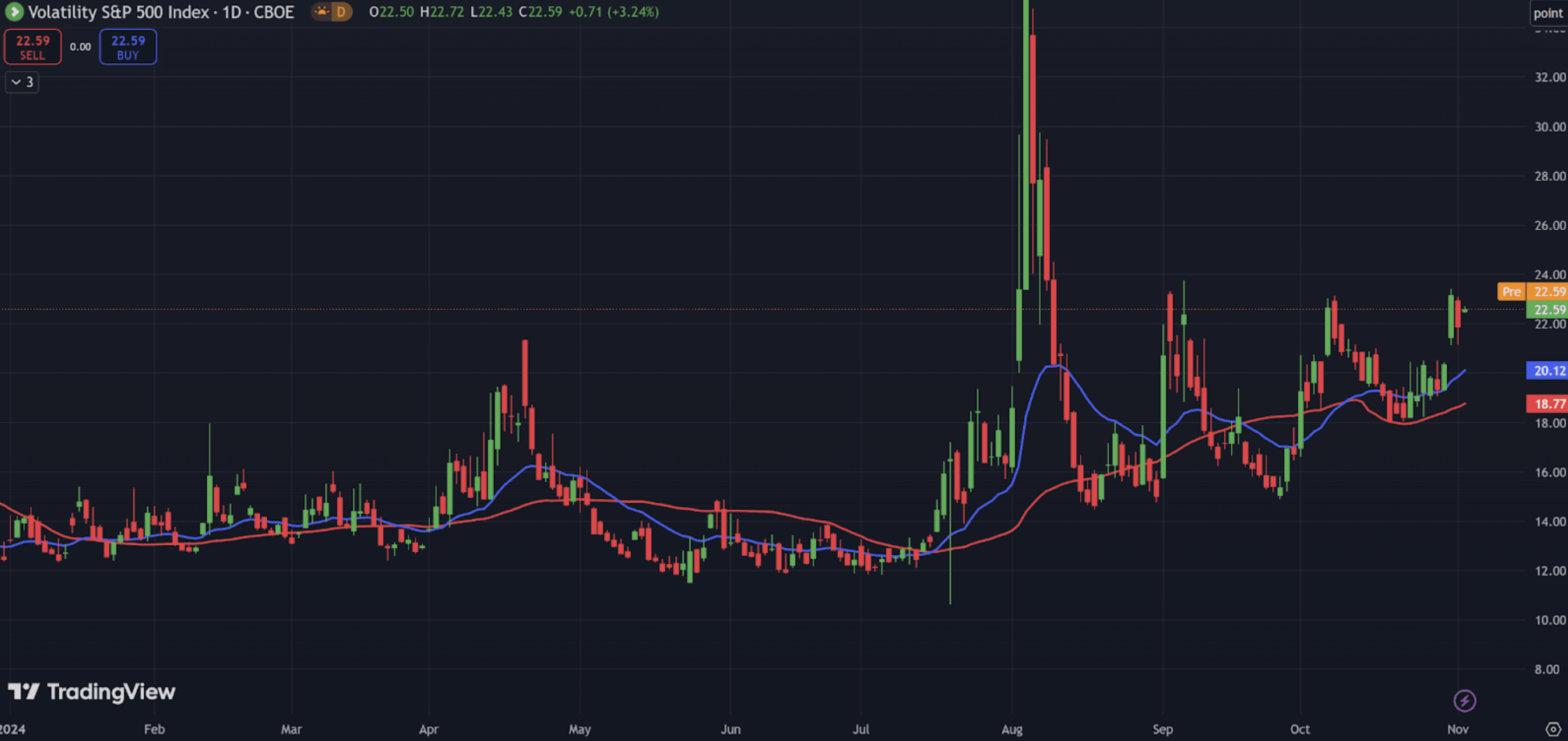 That means, as Kamala’ odds increase, we’ll likely see volatility increase as well.