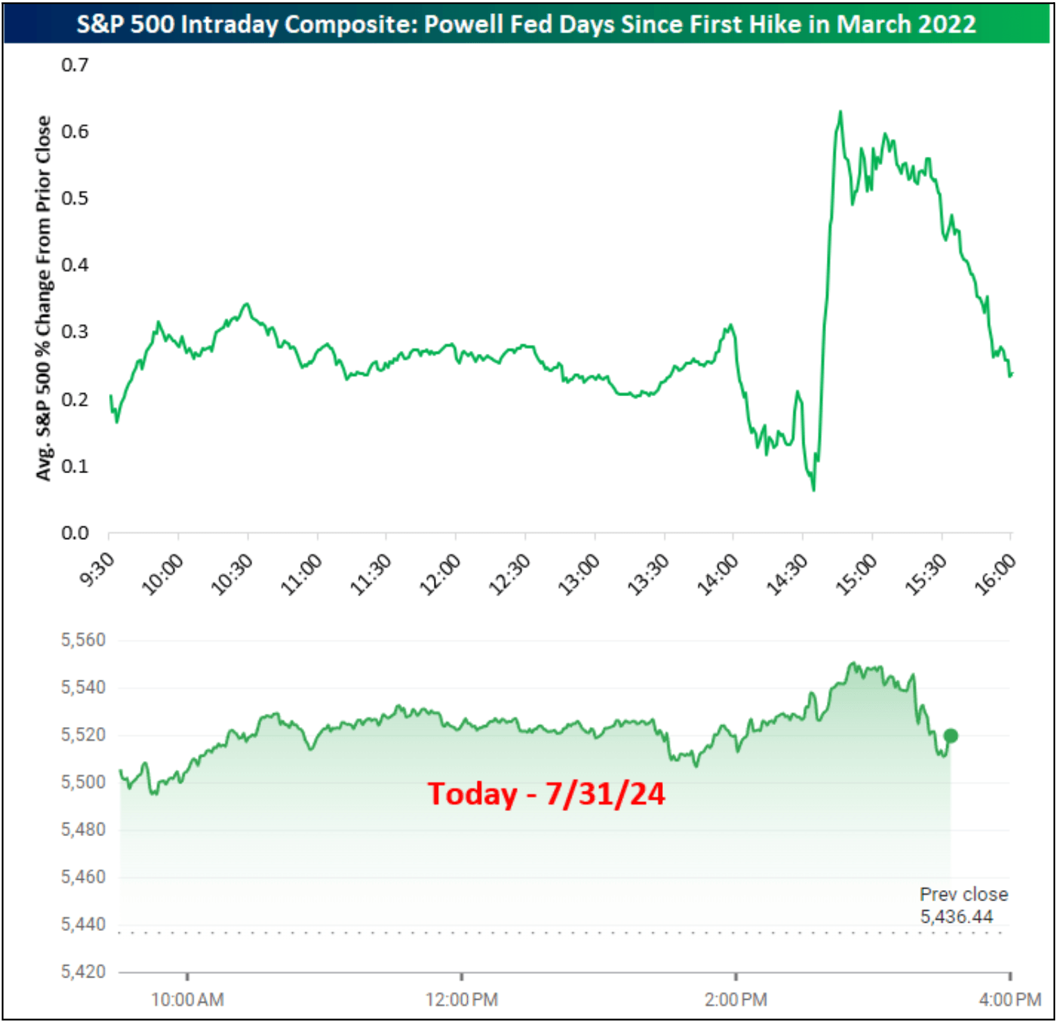 This chart shows how the S&P 500 has moved on “Fed days” since March 2022.