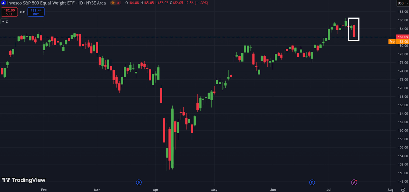 That’s the Equal-Weight S&P 500 Index (RSP), giving back nearly all its gains for the month yesterday.