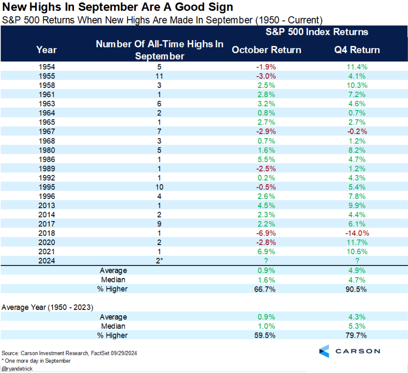 And for the years where we’ve seen new highs in September, returns for both the month of October and the rest of the year have been mostly positive.