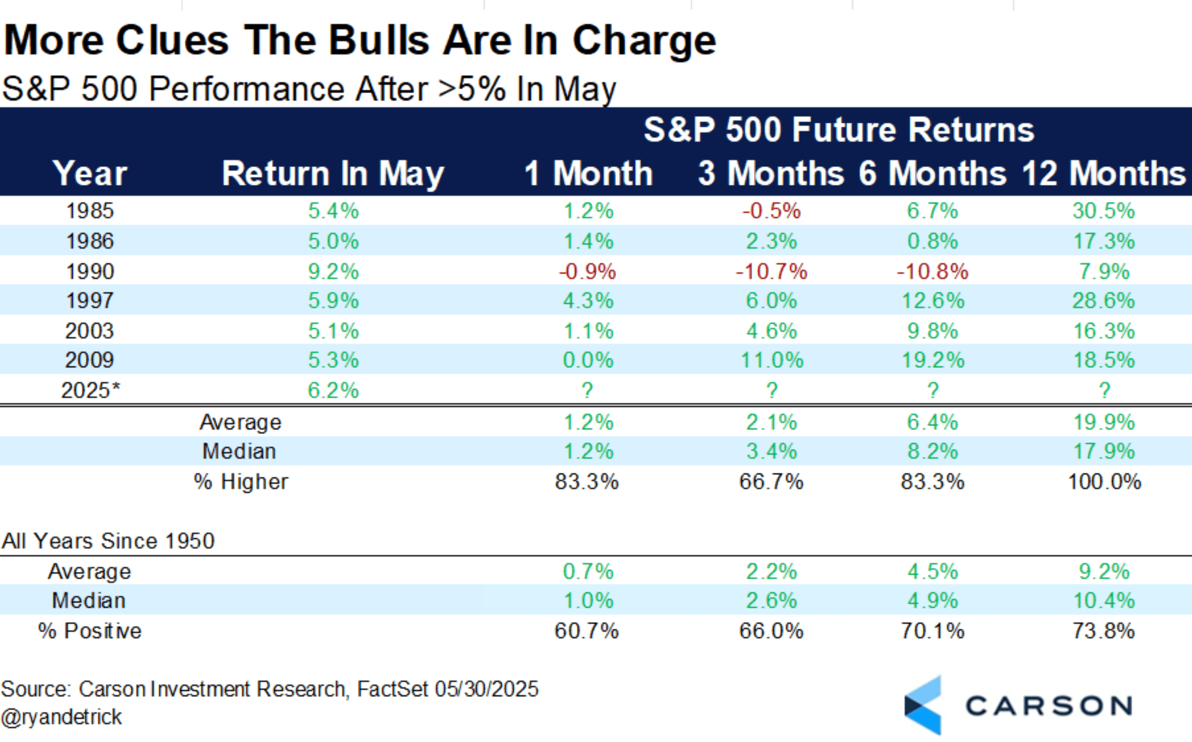 And the data shows that a strong May tends to precede bullish returns for the following months.