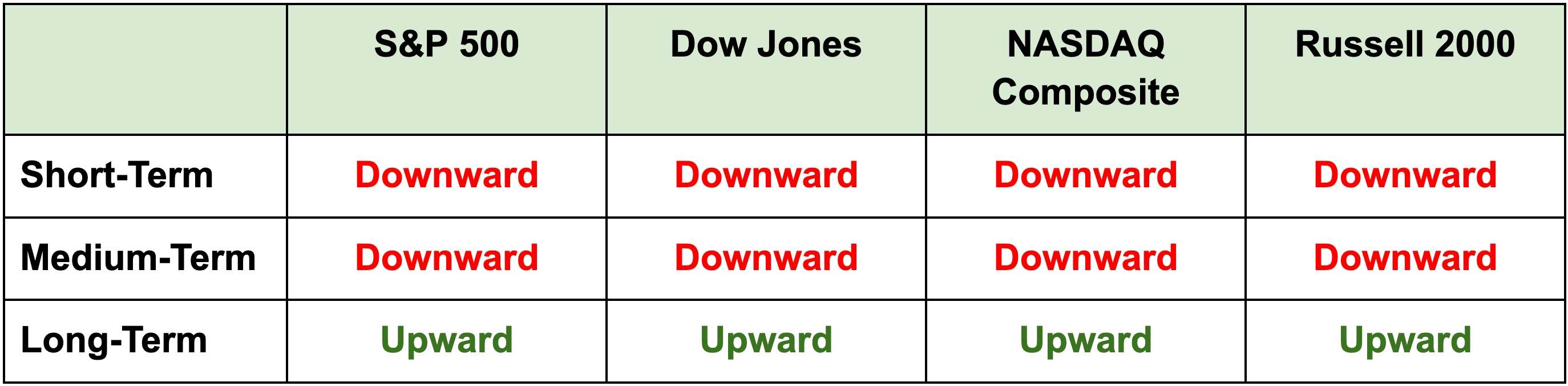 Note: All indexes except the Russell 2000 closed lower again yesterday. No change in any index directions.