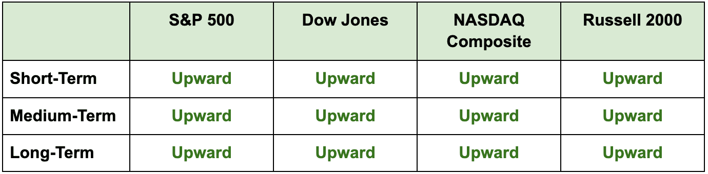 Note: All indexes closed higher to end last week, keeping all directions firmly in the green.