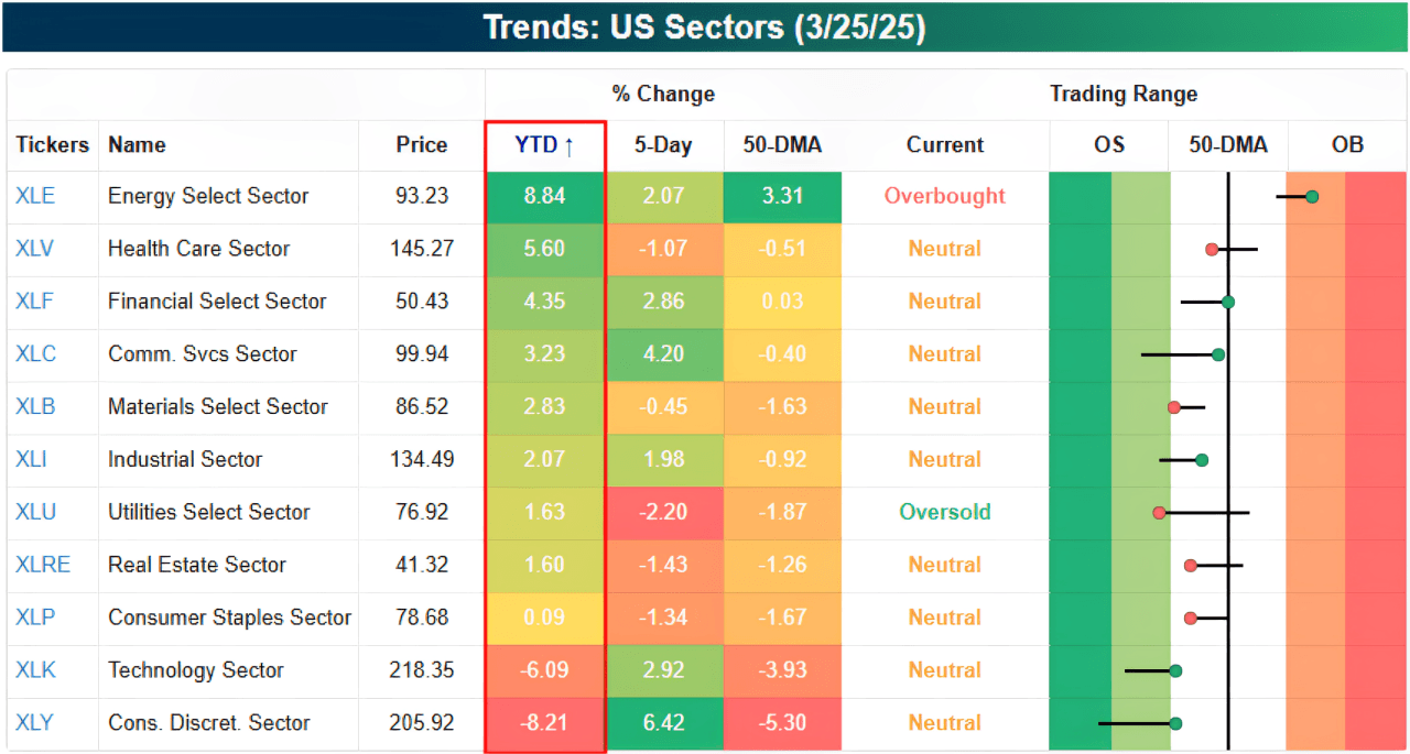 This chart shows the year-to-date performances of the various sectors in the S&P 500.