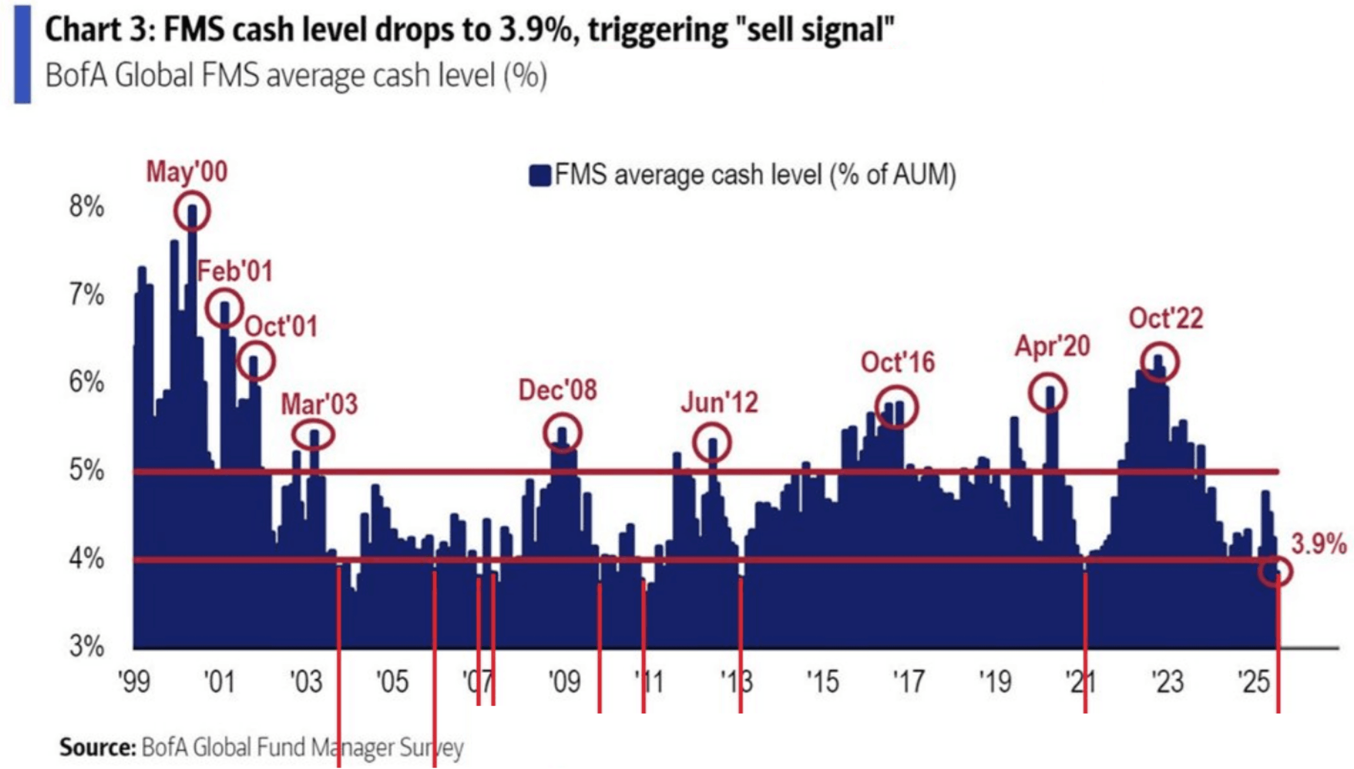 As of the latest survey, the average cash level has dropped to 3.9%...