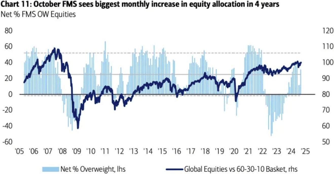 And as you can see, the fund managers – aka the institutional money – are ramping up their stock investments this month.