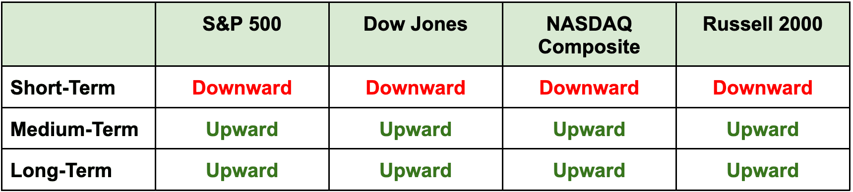 Note: Indexes ended yesterday lower, with all their short-term directions now downward. As we said a couple weeks ago, this was to be expected.