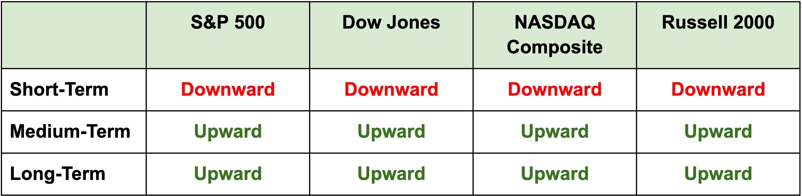 Note: Indexes recovered slightly yesterday but are moving lower today due to heightened geopolitical tensions surrounding the Ukraine war. All short-term index directions are now downward.