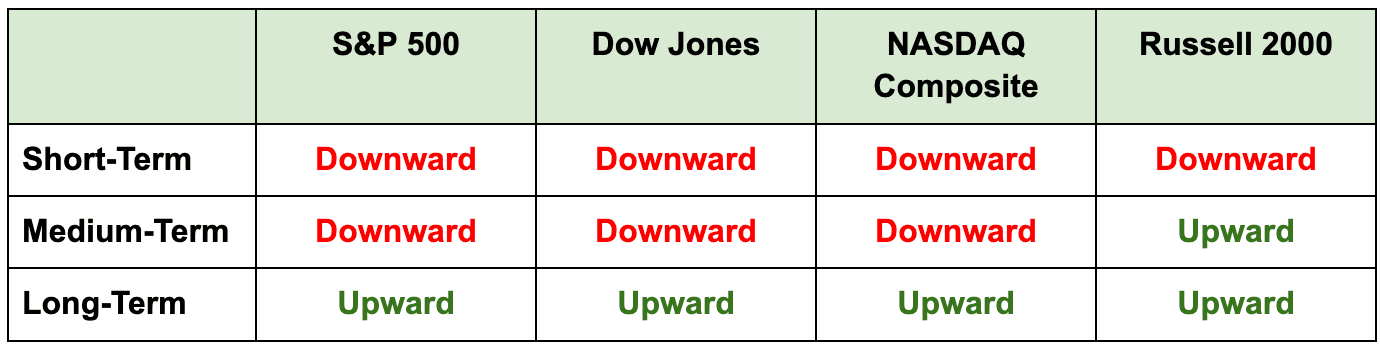 Note: All indexes closed lower yesterday. And while they opened higher this morning, most of them have been moving lower throughout the day. No change in any index directions.