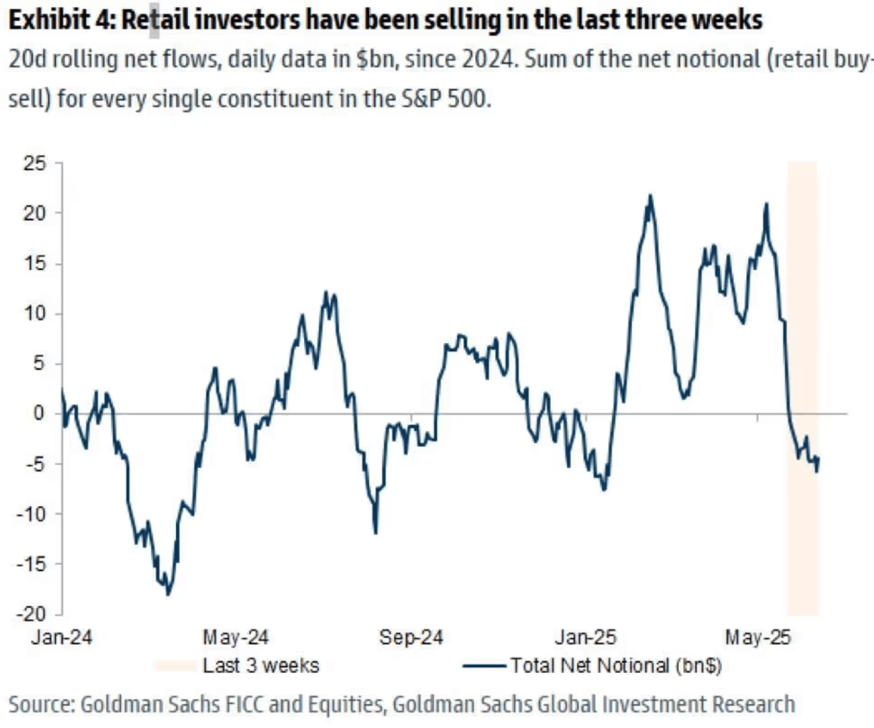 Especially with new data showing retail investors have been net sellers for the past three weeks.