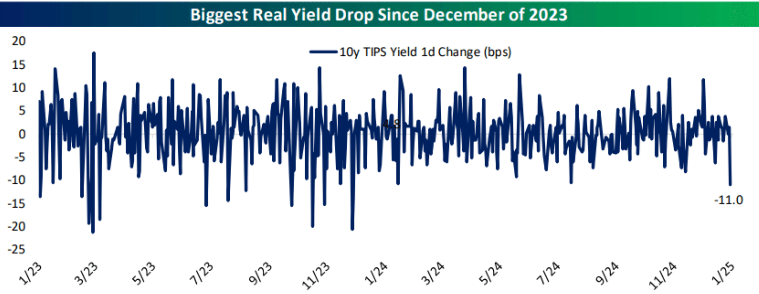 Yesterday’s drop in the 10-year Treasury yield was the largest drop since December 2023.