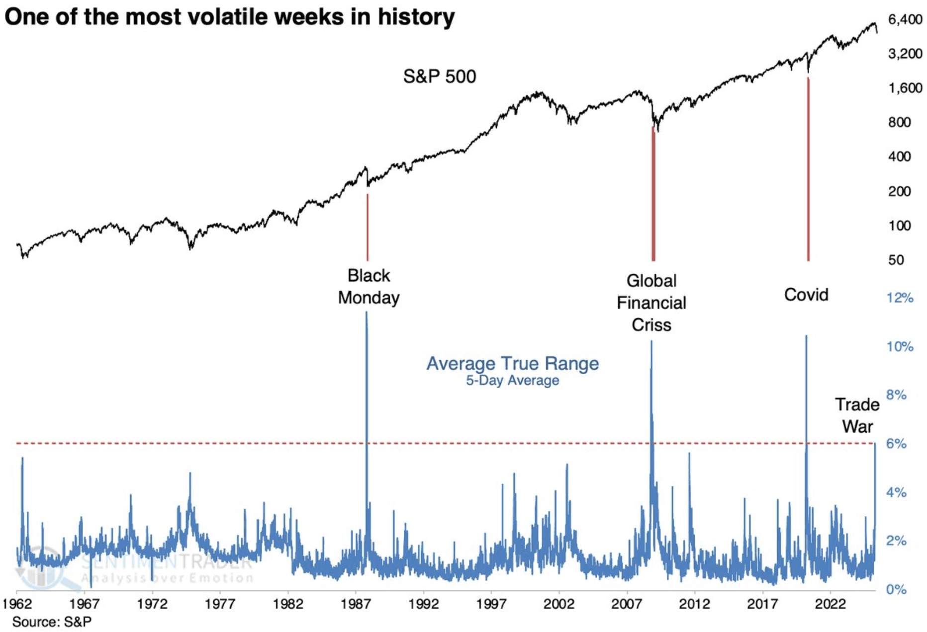 And as you can see, the only other times we’ve seen higher weekly volatility has been during Black Monday, the Global Financial Crisis, and Covid.