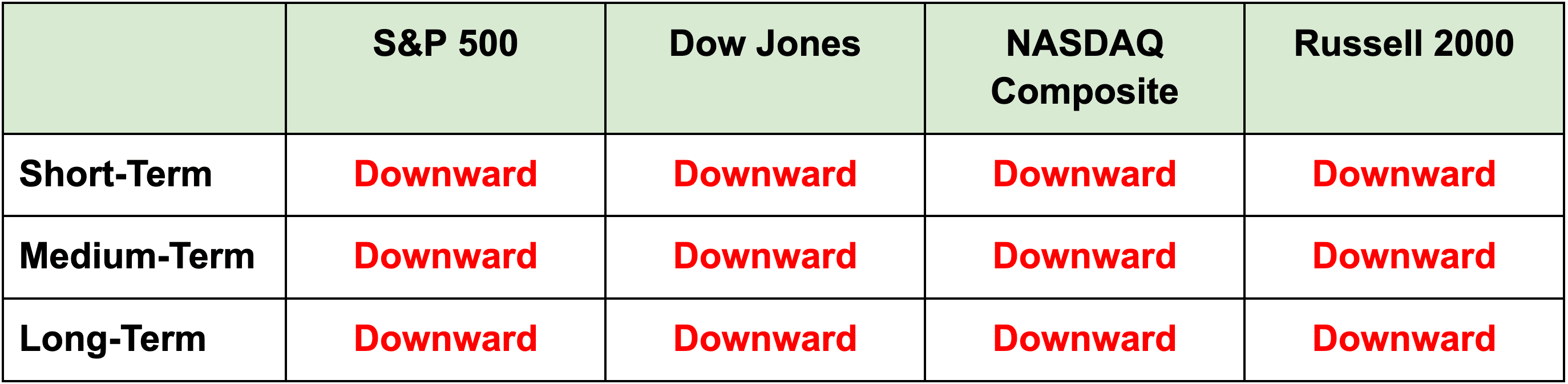 Note: All indexes closed higher again yesterday and opened higher again today as well. Still, all index directions remain downward.