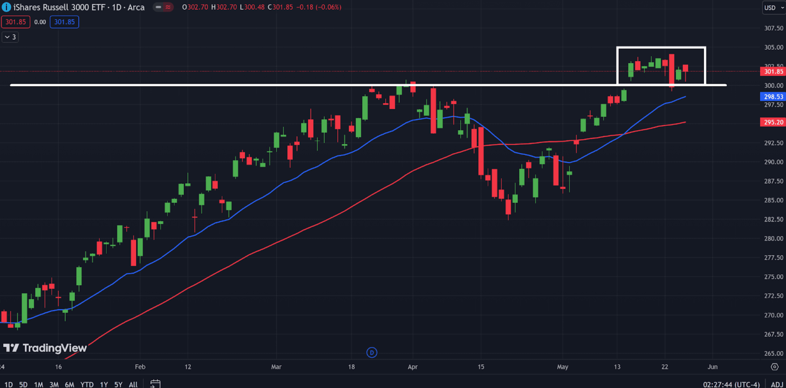 And as you can see, right now, it’s been “stuck” in a technical consolidation range after breaking out past resistance.