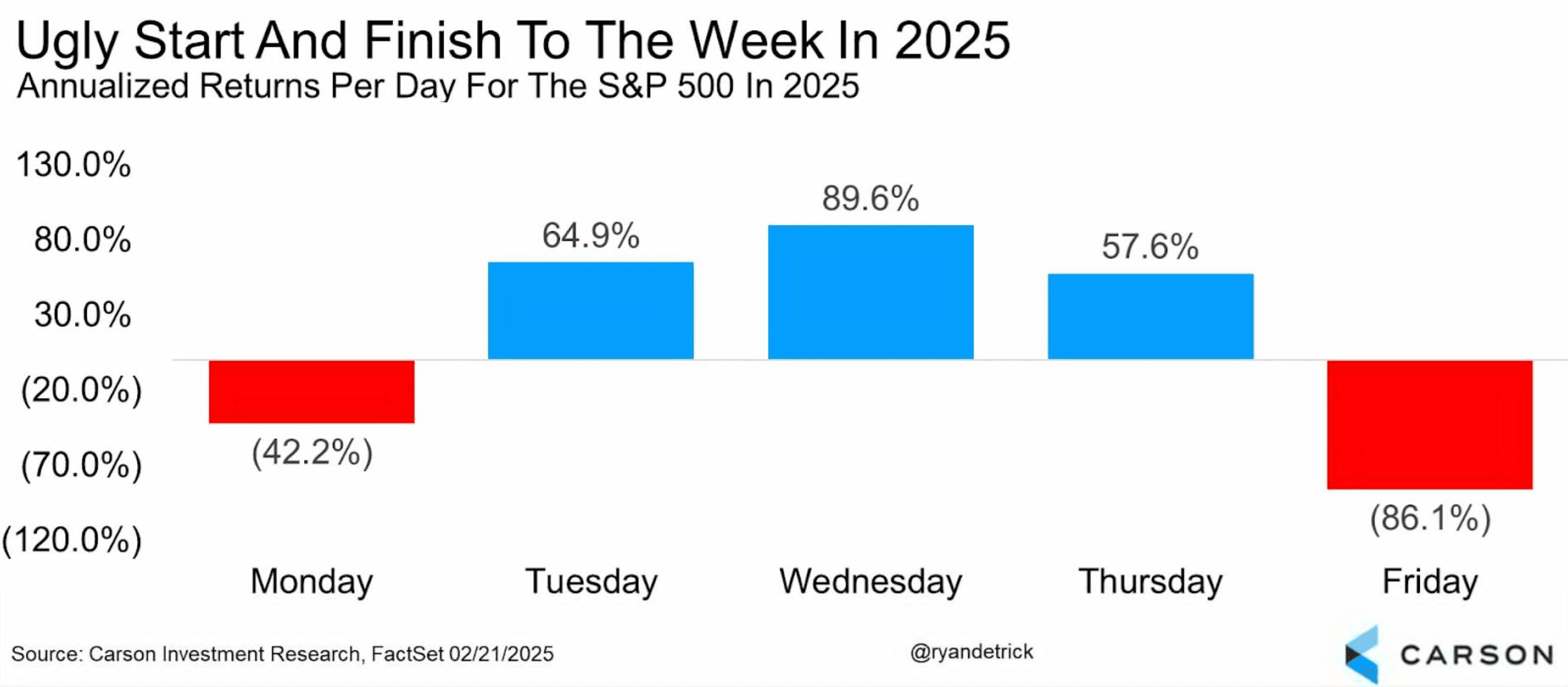 Essentially, if the S&P 500 moved everyday like the average 2025 Wednesday for a year – it would be up 90%.