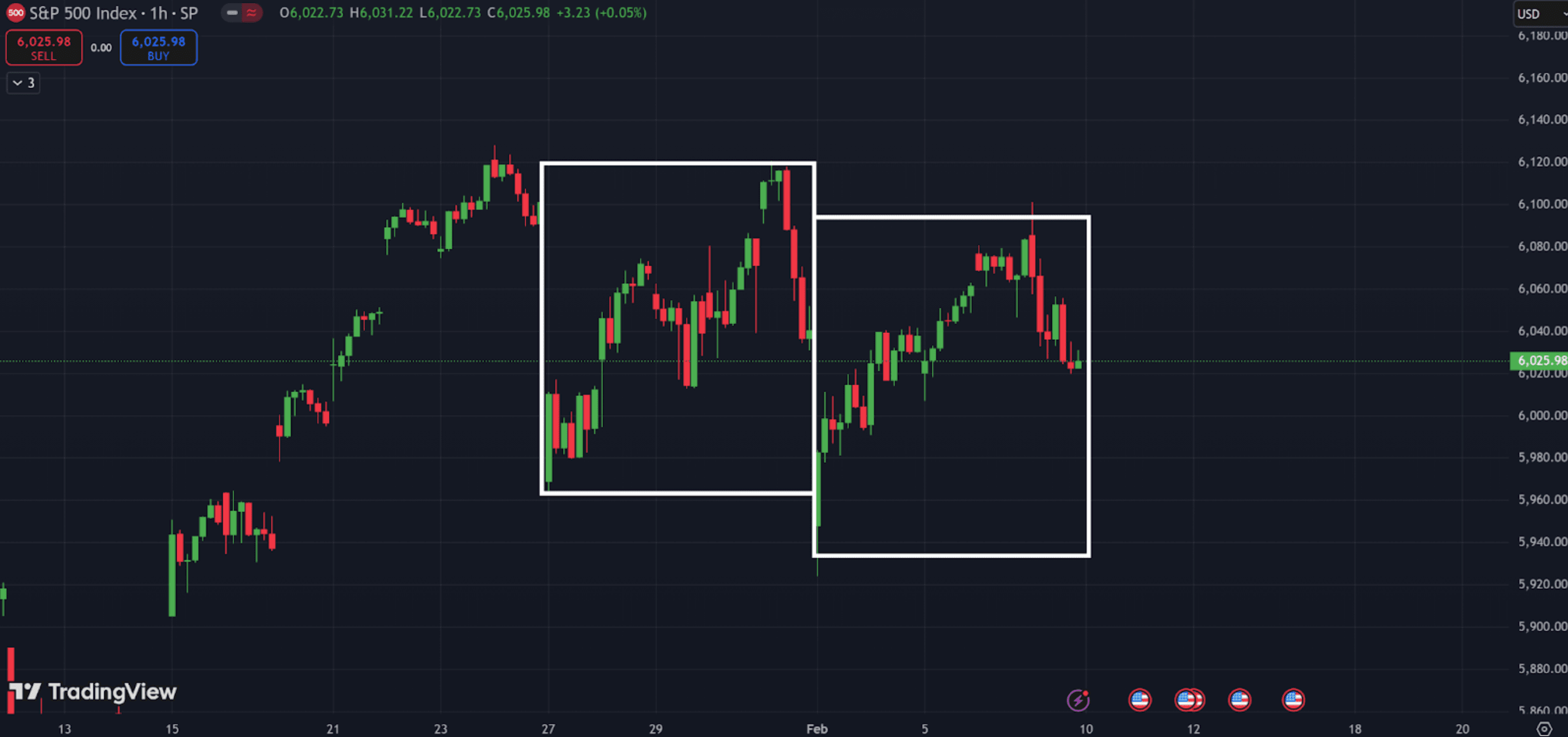 This is the hourly chart of the S&P 500 for the past two weeks…