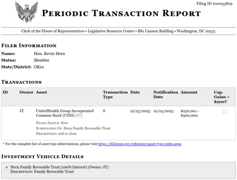 Congressman Kevin Hern likely avoided six-figures in losses thanks to his “prescient” sell.