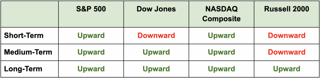 Note: Indexes closed flat or slightly higher yesterday. But they all opened sharply higher today on news of Nvidia’s positive earnings and a weaker jobs report – sending multiple index directions back upward.