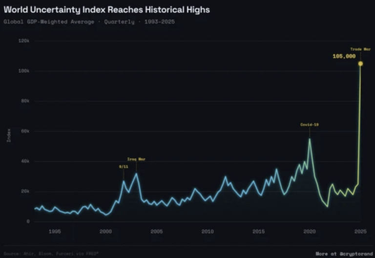 It measures how often economic and political uncertainty is being discussed across major countries around the globe – essentially a gauge of how nervous the world feels.