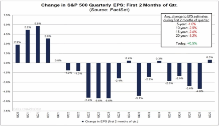 But for July and August – the first two months of the current quarter – they’ve actually flipped and are revising earnings estimates upwards.