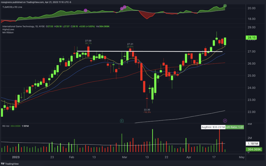 If IGT pulls back to the $27 area, that would be a great place for a pullback buy or to add on to the position.