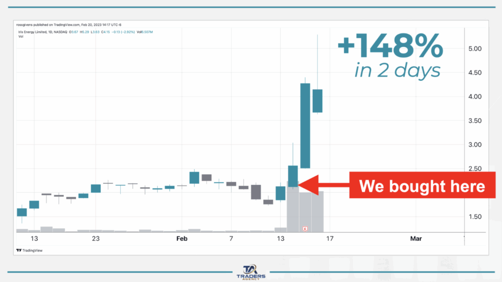 Using a strategy that could have delivered a 148% gain in 2 days on Iris Energy.