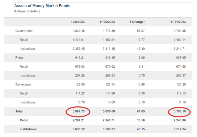 And as of the middle of last week, there was nearly $5.9 trillion of money in the sidelines – an increase of over $120 billion from two weeks prior.